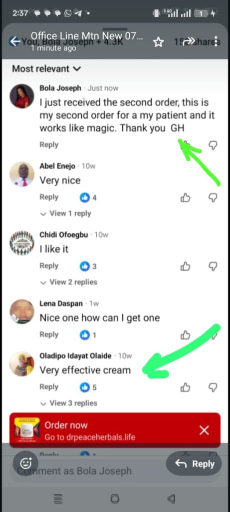 “I had severe shoulder injury while playing footbal on my street, and i could not work or play with my family . To the glory of God, GH cream solved my shoulder problem after 2 weeks of application”